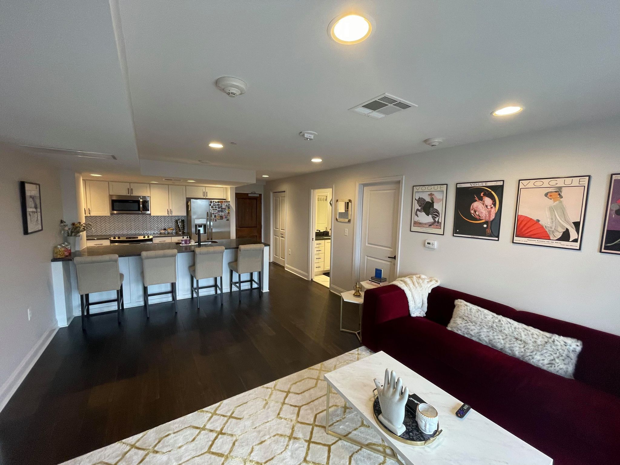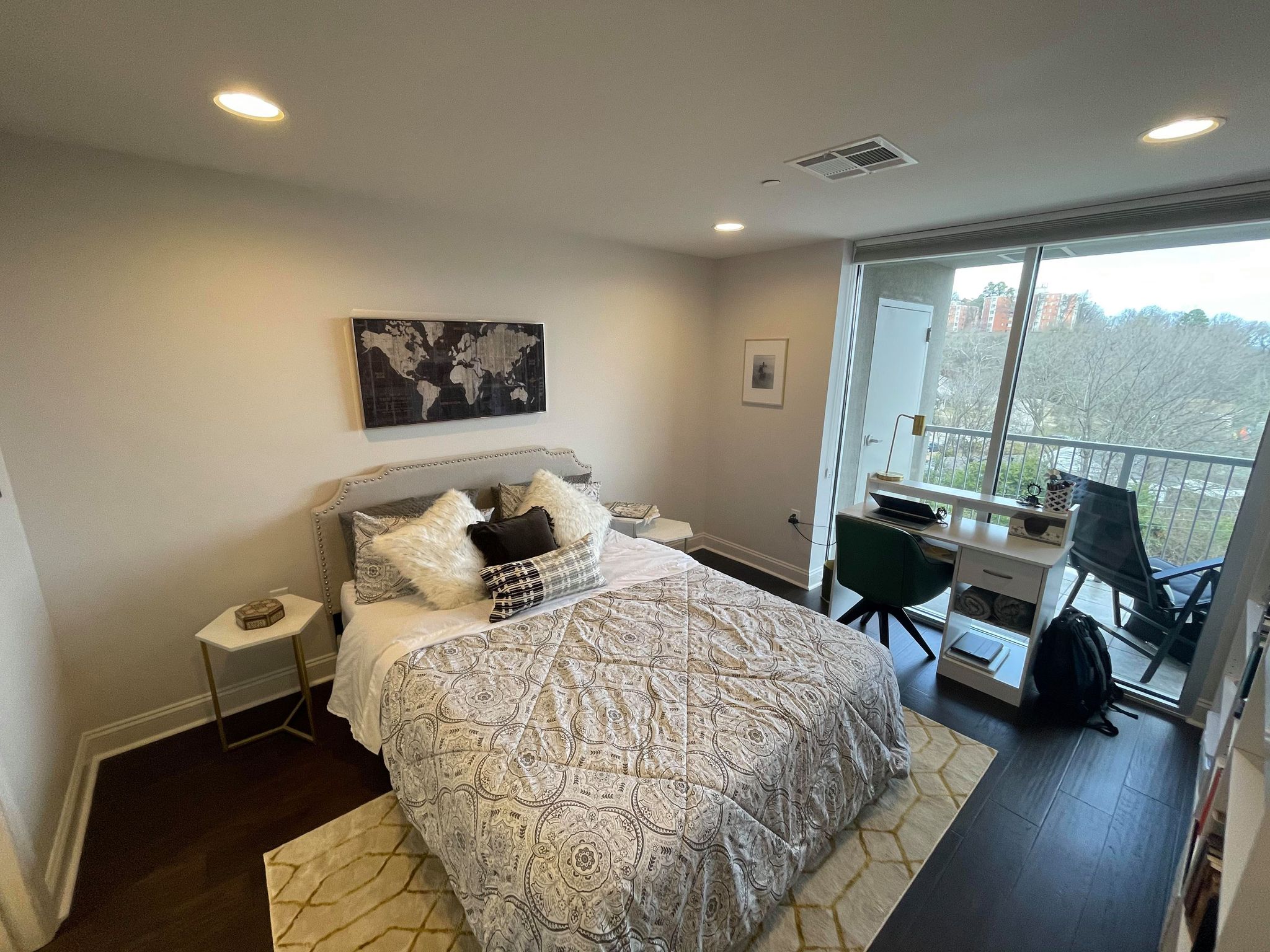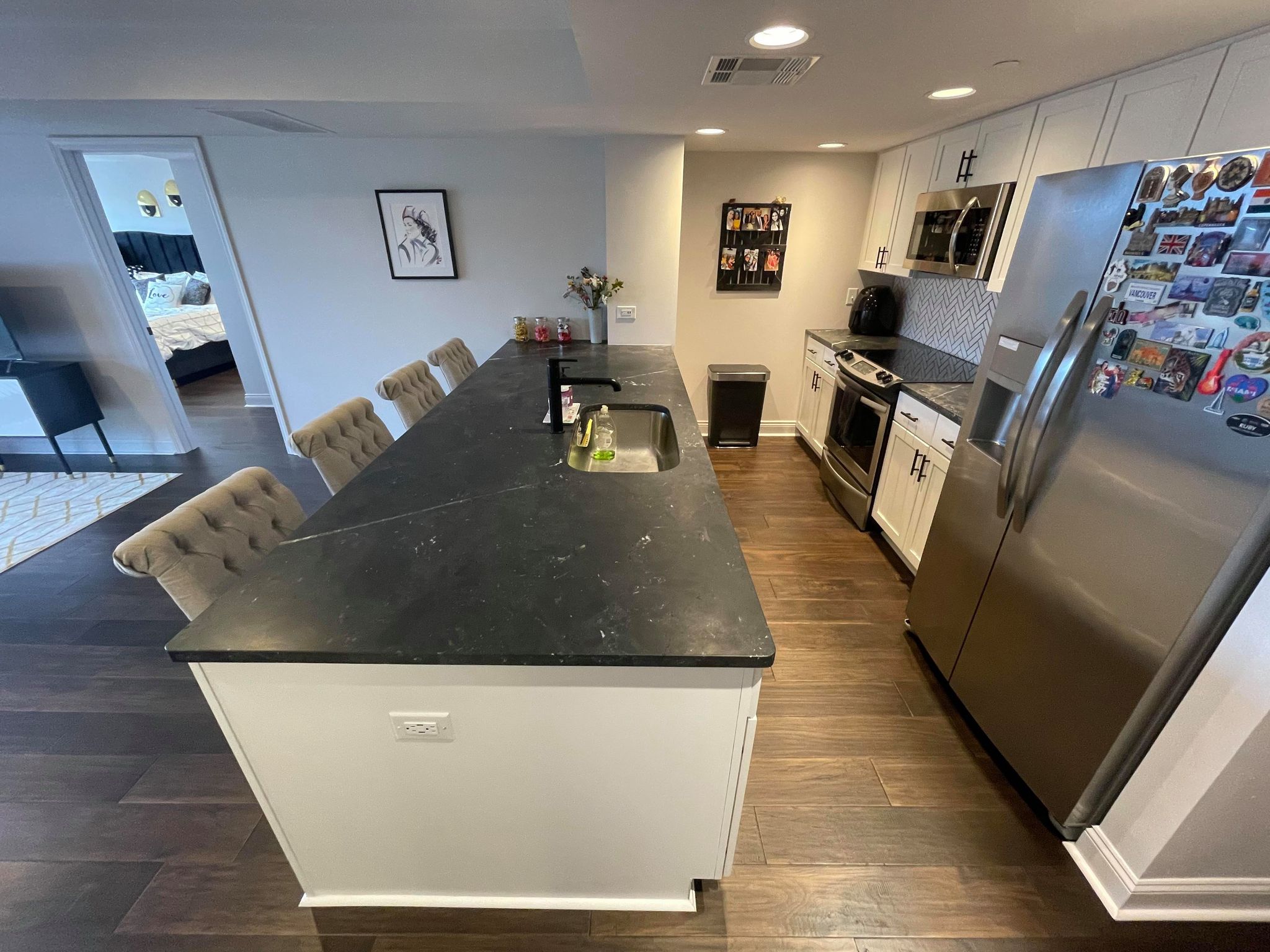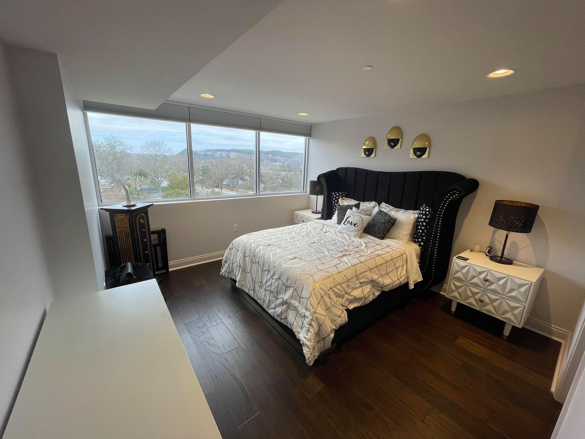 Newly designed and very modern an open-concept living room and kitchen with stainless steel appliances, amazing countertops, and hardwood floors throughout. Located in a limited access building on the 6th floor with a private balcony with views of the bluff!