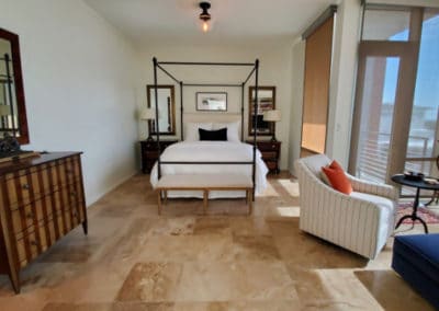 Two units have been combined to create this unique floor plan with two large bedrooms and an extra office/den or dining area. Huge master suite with large closet and private balcony. Travertine floors throughout w/ heated bathroom tiles, Leathered-quartzite countertops , custom cabinetry and built-ins, GE Cafe appliances & gas cooktop, slurry-brick ethanol fireplace, huge master suite with massive walk in closet, built in office/vanity & spa like bath. Conveys with three reserved parking spaces and a large storage unit. This unit can be leased furnished or unfurnished.